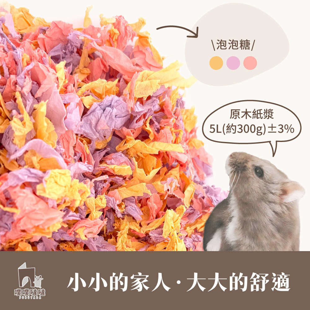 A:5L 紙棉適合作為造景配色搭配使用,建議與其他墊料混鋪,增加豐容層次讓籠內環境更豐富多元。
