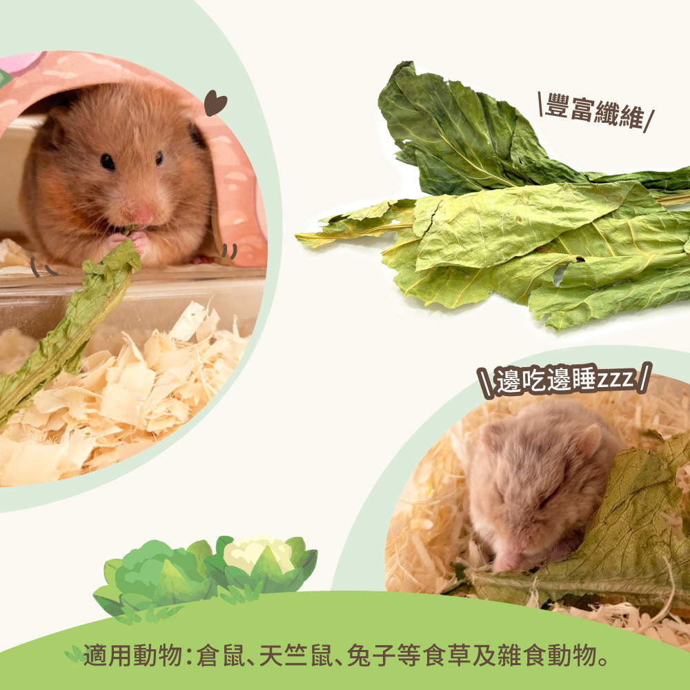 1.本產品為乾燥天然植物素材,非食草動物主食,請作為少量補充或零食使用,不可取代日常主糧與牧草。