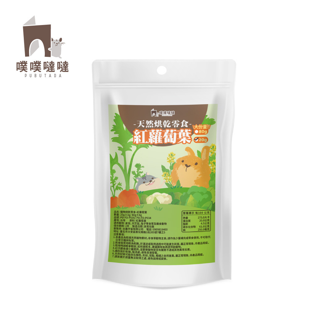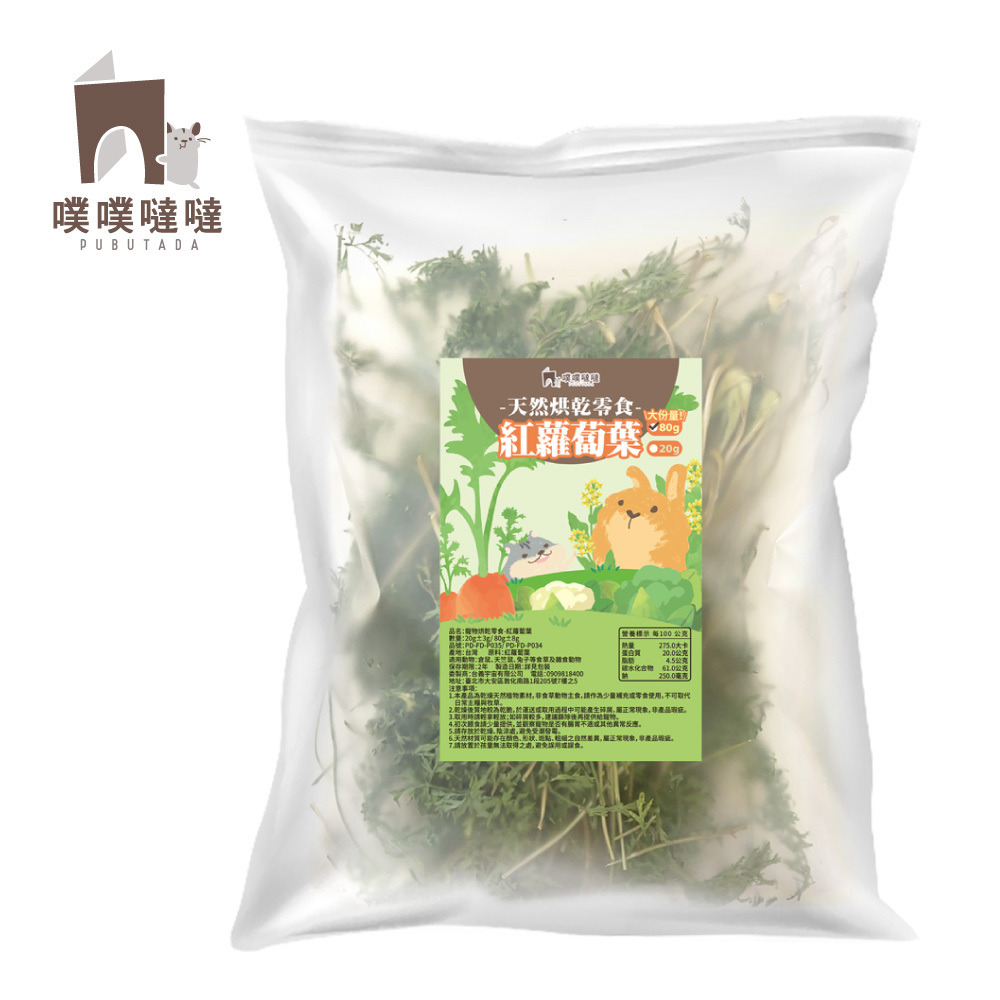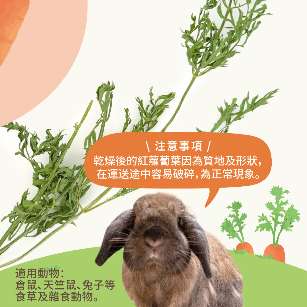 A:烘乾紅蘿蔔葉屬於高營養的補充點心,建議作為獎勵或副食給予。