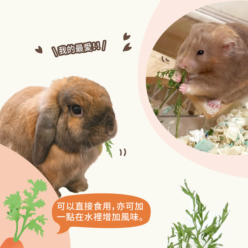 A:紅蘿蔔葉屬於深綠色葉菜類,對倉鼠來說是一個不錯的補充零食,高纖維質、豐富的微量營養素!
