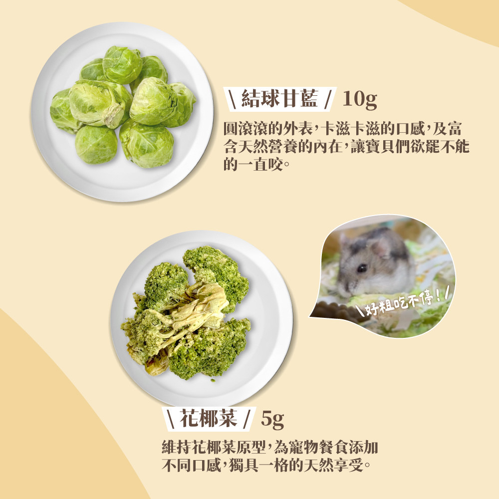 維持花椰菜原型,為寵物餐食添加不同口感,獨具一格的天然享受。